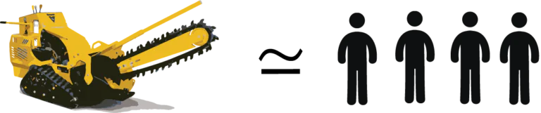 As máquinas também geram seu próprio material de reaterro pelo fato de triturarem o material escavado. Escavadeiras e retroescavadeiras retiram o material em blocos que, muitas vezes, não são aproveitados para o reaterro, demandando empréstimo de materiais.